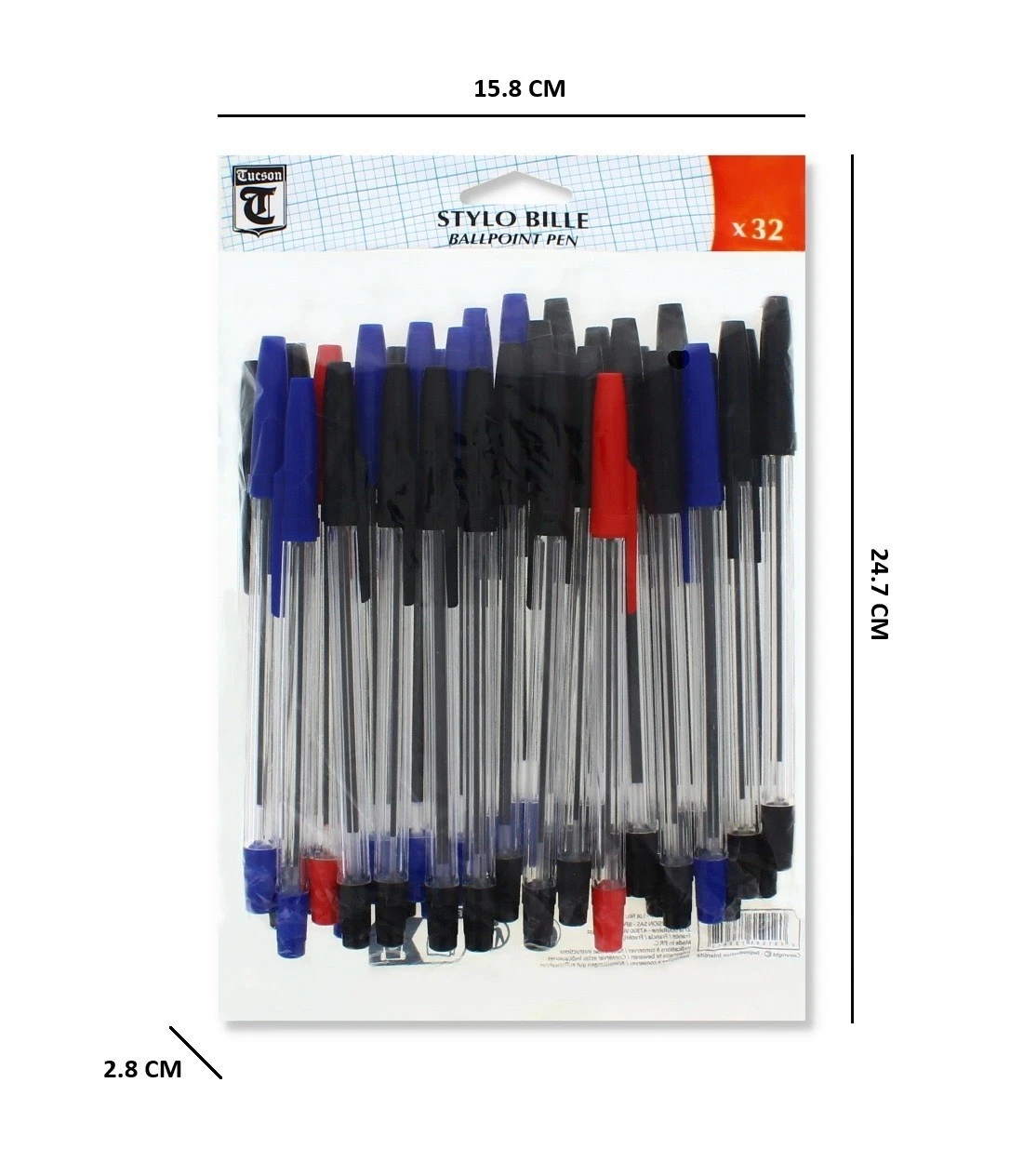 Assorted Ball Pens- Red, Blue & Black 32 Pack