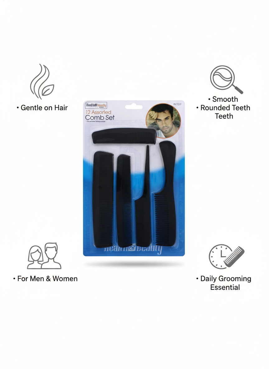 The beard oil helps soften, nourish, and add shine to the beard, while the 12-piece comb set allows easy styling for different beard and hair types. The manicure tools ensure clean, well-maintained nails. Ideal for personal use, travel, salons, or gifting purposes.